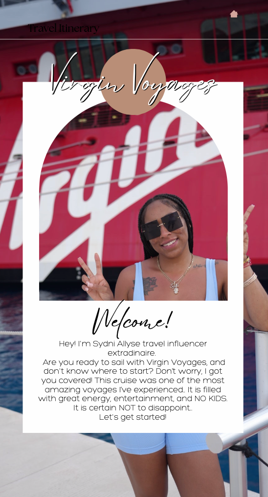 Step aboard as I take you through my week on Virgin Voyages, an all-inclusive, adults-only cruise like no other! From exploring the charm of Key West to the vibrant energy of Cozumel, Mexico, and the exclusive paradise of Bimini Island, this eBook details my full itinerary, must-visit attractions, and unforgettable experiences. Whether you're considering booking or just curious about the Virgin Voyages experience, get ready to set sail on a journey of luxury, adventure, and relaxation!